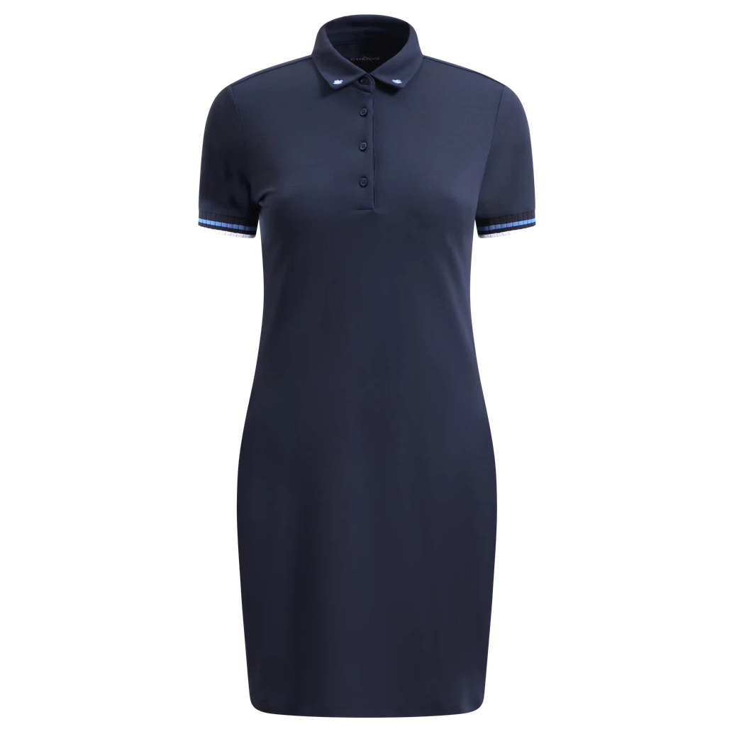 Dámske šaty VIVIANA sú vyrobené zo 100 % polyamidového piké materiálu s úpravou Dry-Matic® a Sunblock®, ktorý zabezpečuje výnimočnú priedušnosť, sviežosť a rýchle schnutie, vďaka čomu sú ideálne na nosenie počas celého roka. Na golieri sú vyšívané dva malé štvorlístky, ktoré dodávajú šatám symbol šťastia. Široké rebrované prieramky s dvojfarebnými pruhmi spájajú štýl s pohodlím. Ľahký, no odolný materiál zaručuje pohodlné nosenie počas celého dňa, či už ide o ležérne alebo polofomálne príležitosti.