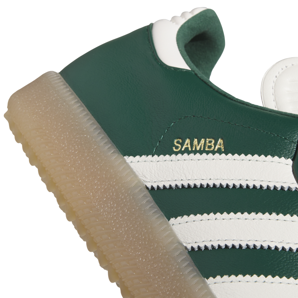 V týchto golfových teniskách adidas Samba prinesieš do ďalšieho kola poriadnu dávku originálneho štýlu. Zachovávajú si dedičný look pôvodného modelu, majú kožený zvršok so semišovými detailmi a nechýba im ani kultová téčková špička. Vyznačujú sa tlmiacou medzipodrážkou a gumenou podrážkou, ktorá ti zabezpečí spoľahlivú priľnavosť na ihrisku, vďaka čomu ti umožnia v pohodlí odohrať všetkých 18 jamiek a následne vyraziť do klubu.
